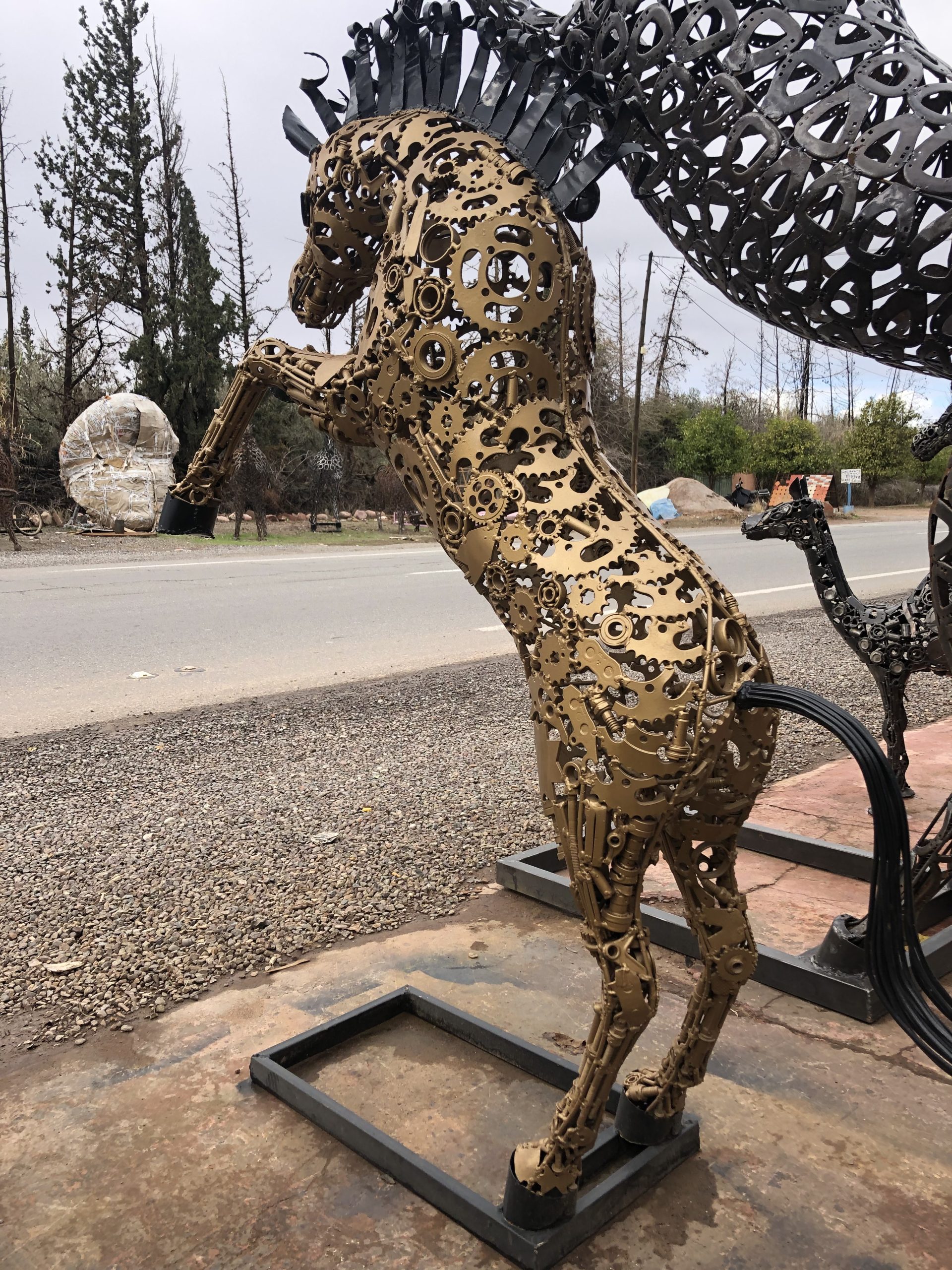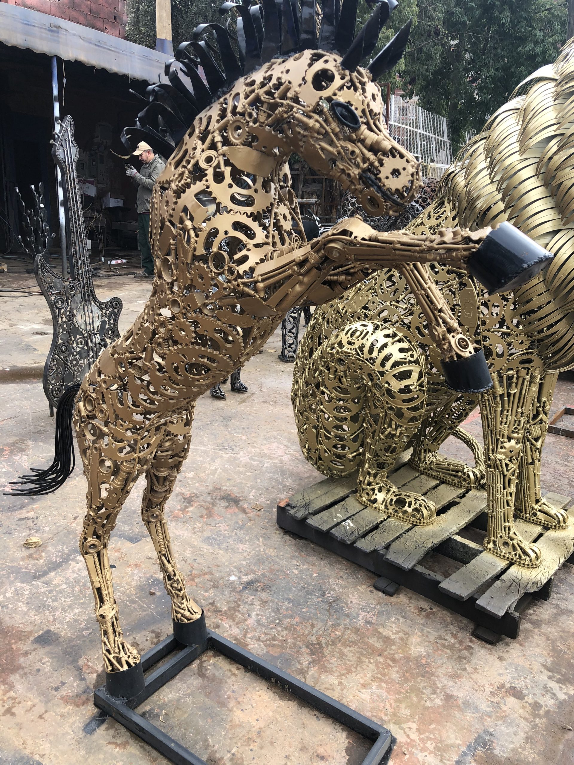 Golden small standing metal scrap horse