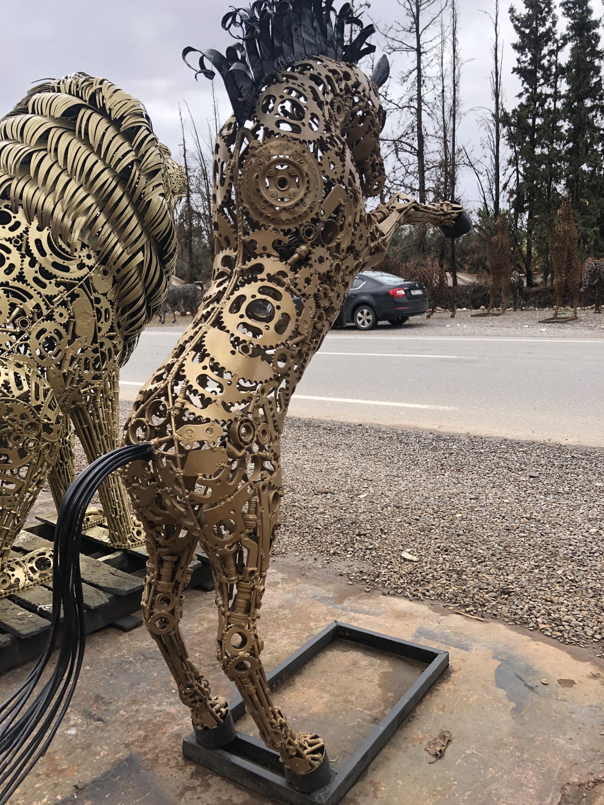 This striking handmade sculpture, crafted from steel and scrap metal, brings a unique blend of artistry and craftsmanship. Made in our Marrakech, Morocco workshop, its detailed design is sure to captivate and elevate your space.
