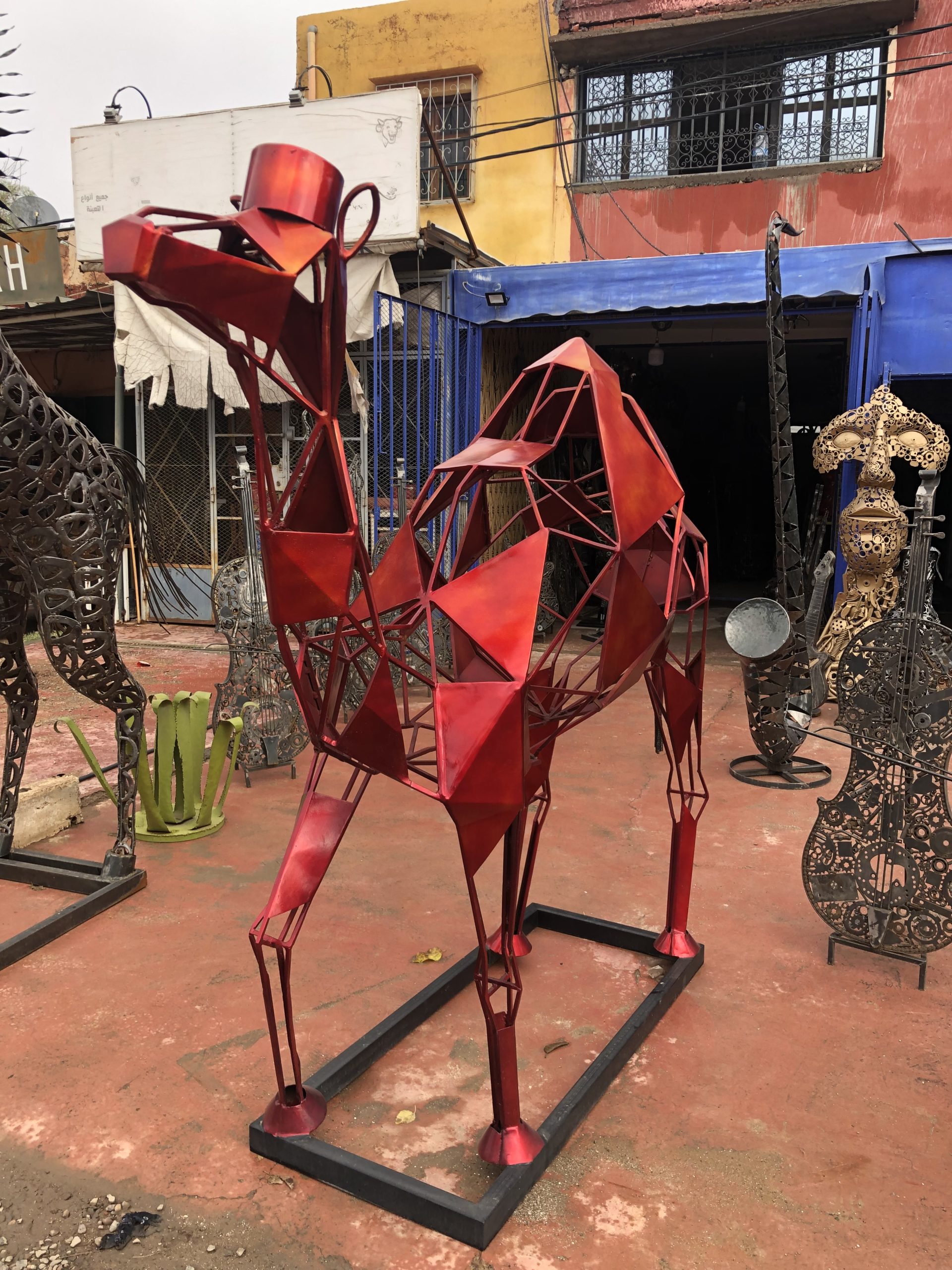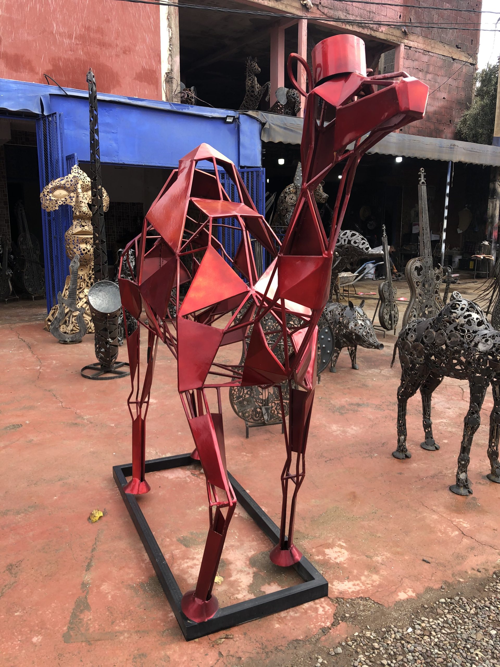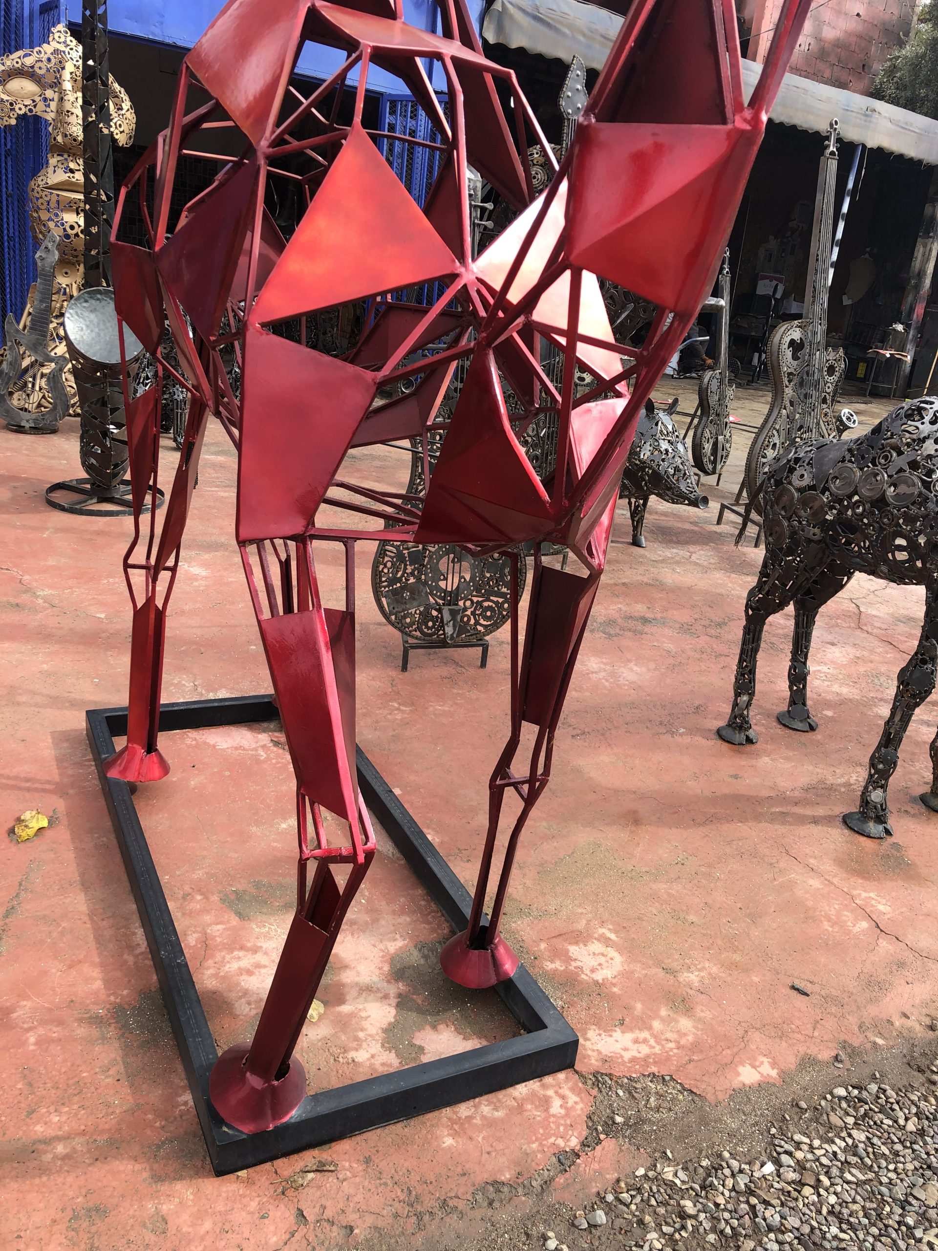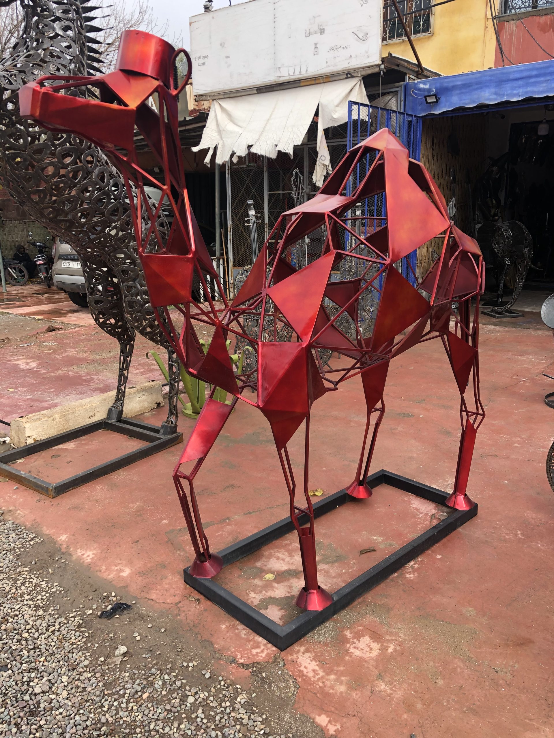 This recycled metal camel sculpture not only serves as an artistic focal point but also stands as a testament to sustainability, transforming waste into a breathtaking work of art.