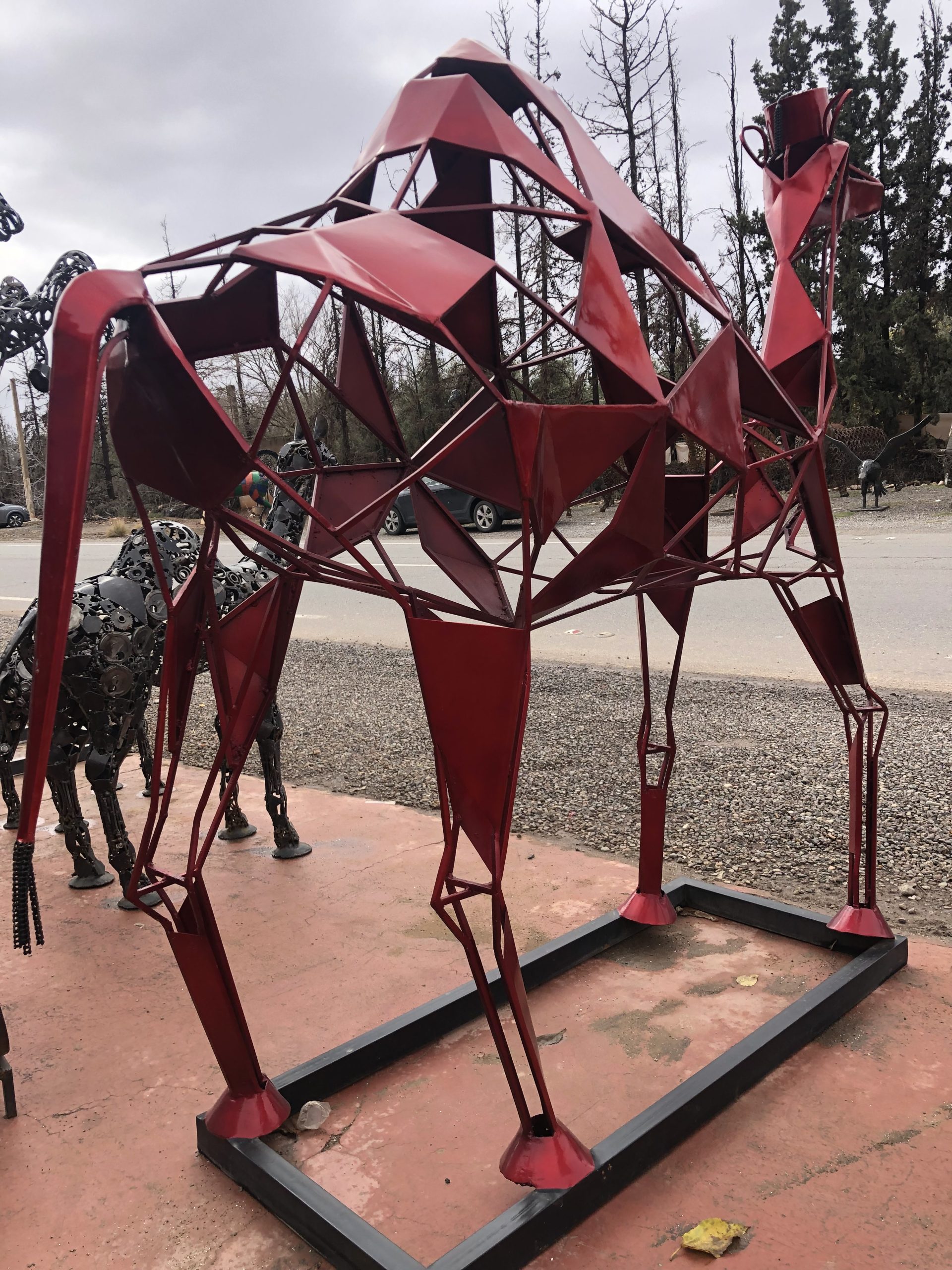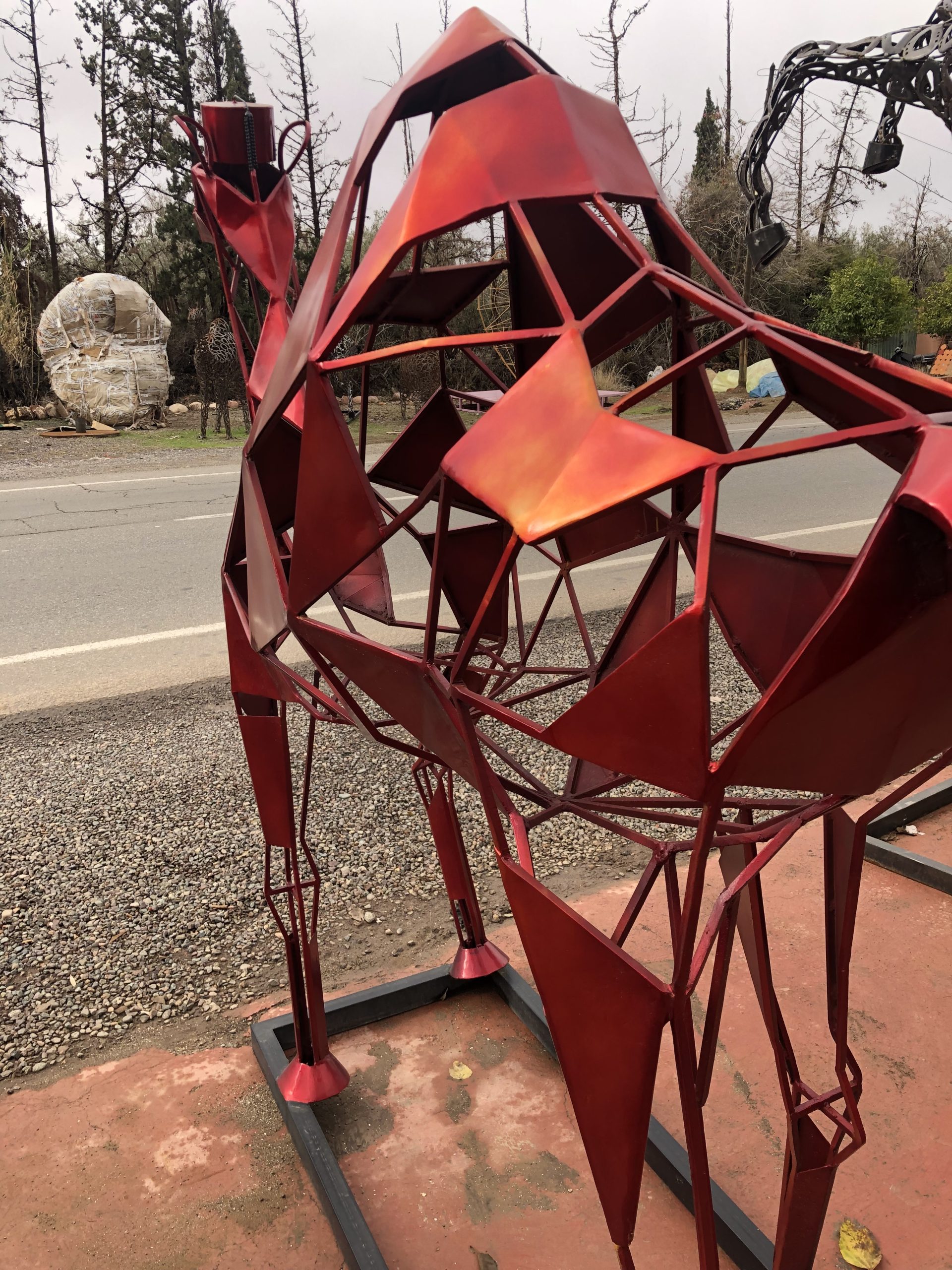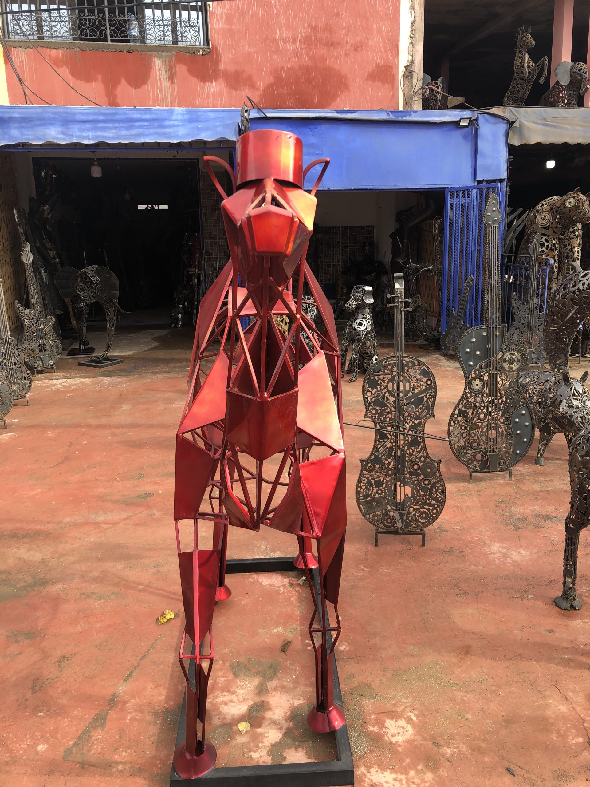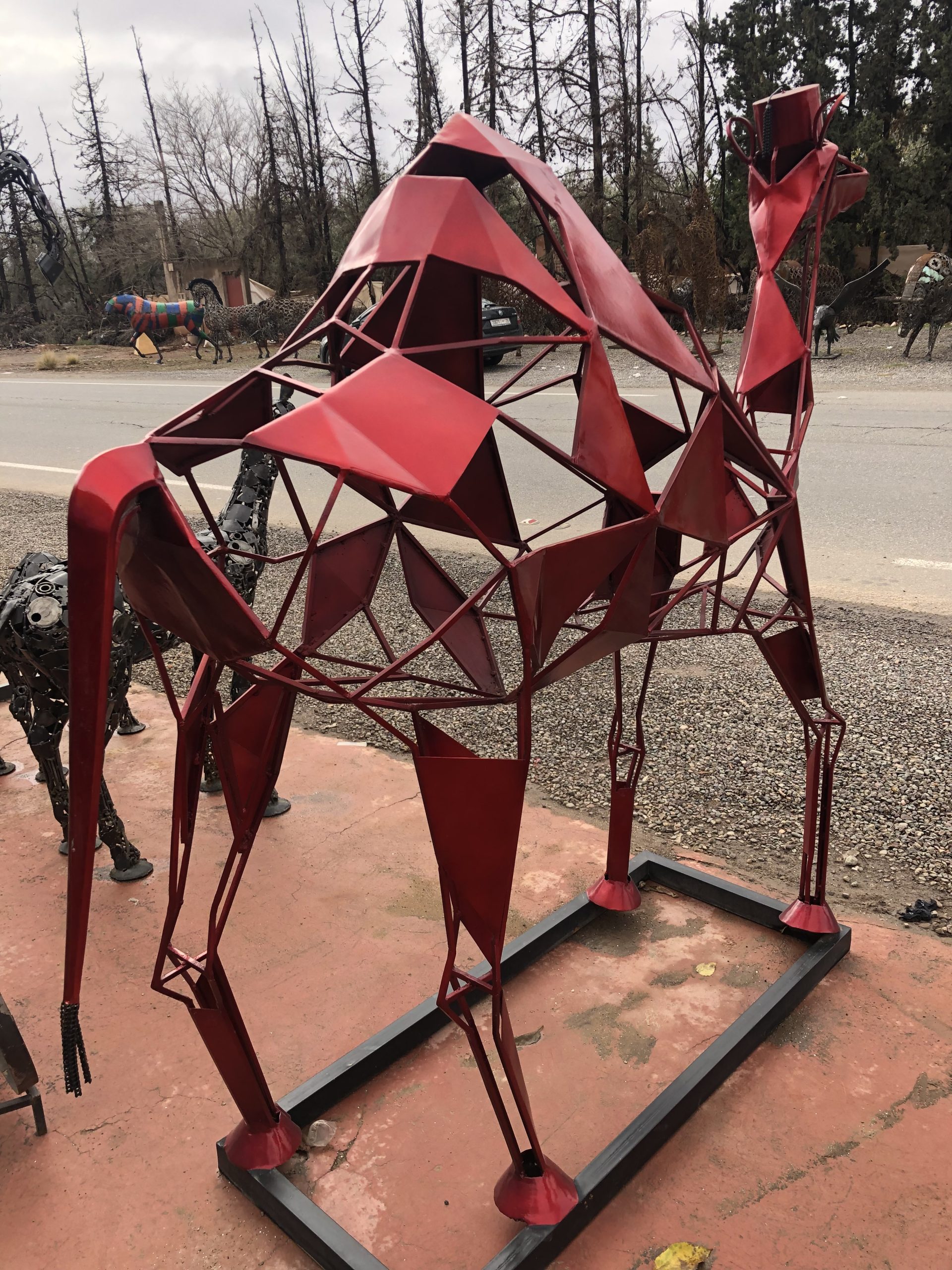 This recycled metal camel sculpture not only serves as an artistic focal point but also stands as a testament to sustainability, transforming waste into a breathtaking work of art.