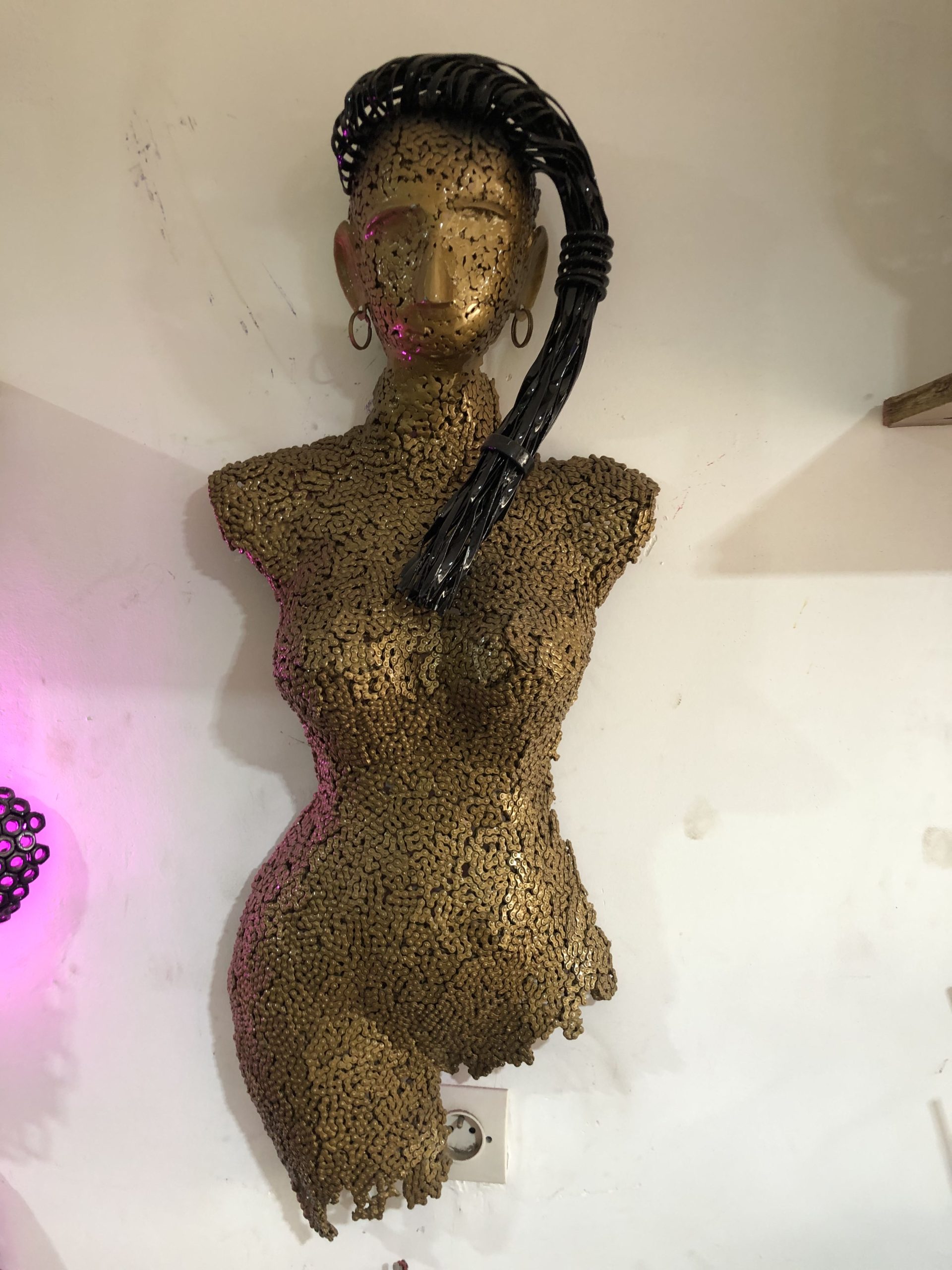 Metal Female Torso scrap from our Marrakech, Morocco workshop. It has all the intricate details and a unique design that makes it really captivating.